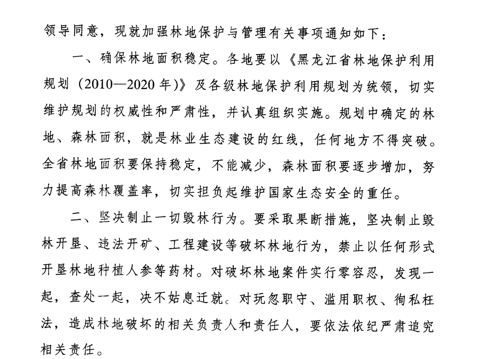 黑龙江省人民政府办公厅关于加强林地保护与管理的通知