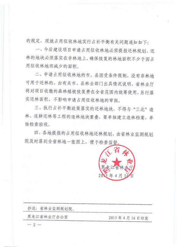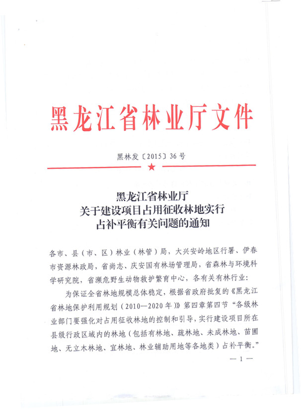 黑龙江省林业 厅关于建设项目占用征收林地实行占补平衡有关问题的通知